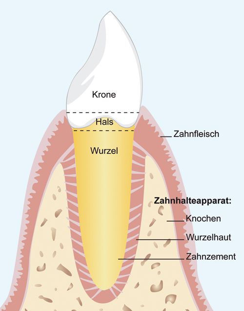Die Parodontitis (oder „Zahnbettentzündung“) ist eine Entzündung des Zahnhalteapparates. Dieser Halteapparat besteht im Wesentlichen aus dem Zahnfleisch, der Wurzelhaut und dem Kieferknochen. Er umschließt die Zahnwurzel und gibt dem Zahn sicheren Halt im Kiefer. Eine Parodontitis entsteht meist aus einer unbehandelten Zahnfleischentzündung.
